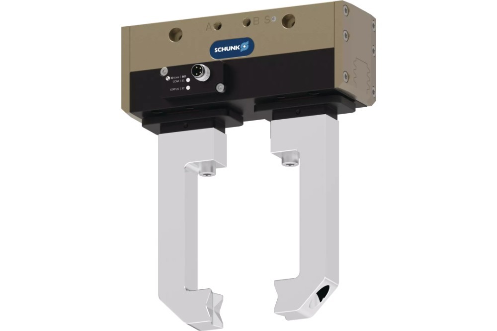 Introducing the NEW Schunk PGL-plus-P pneumatic universal 2-finger parallel gripper featuring a long jaw stroke, integrated sensor system, and high payload due to use of a multi-tooth guidance.