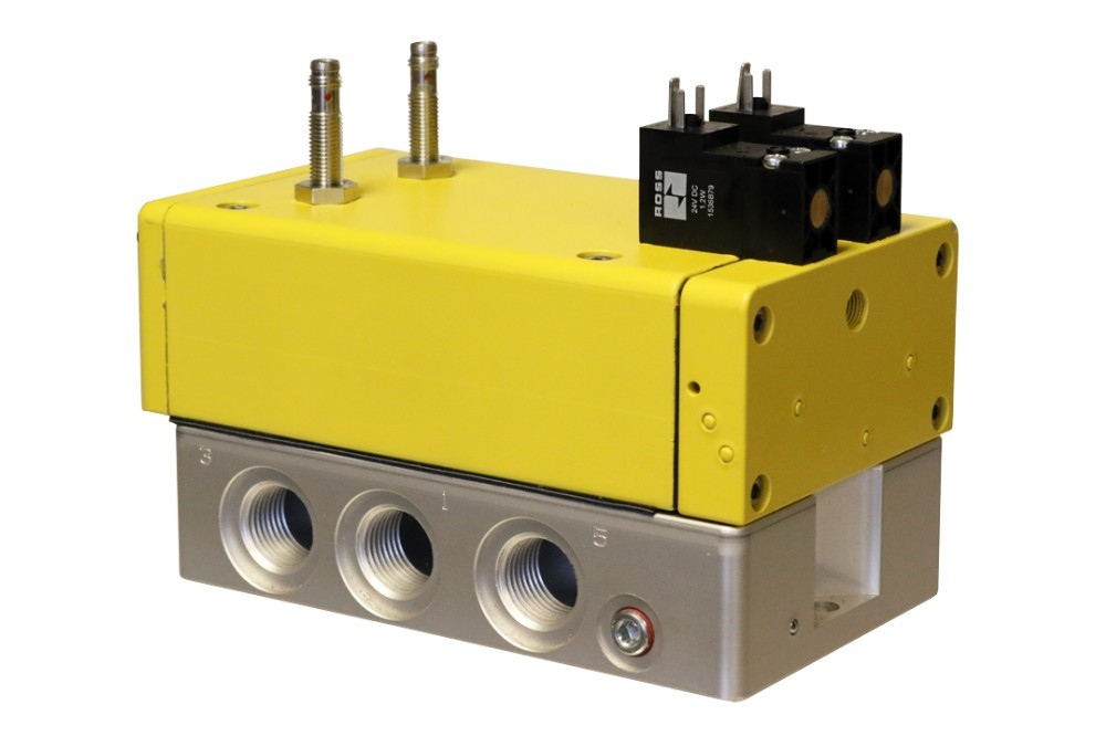 Ross offers safety pneumatic valves with either internal and external monitoring options where competitors only offer external monitoring. The following examples are all 3rd party certified PLe.